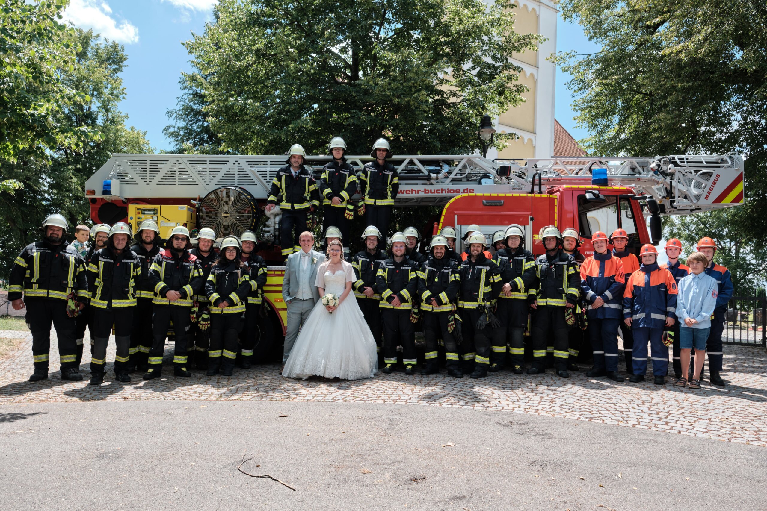 Eine Feuerwehrhochzeit im wahrsten Sinne feierten am Samstag, den 12. Juli 2025 unsere Feuerwehrkameraden Ronja und unser Feuerwehrkamerad Markus. Um die Mittagszeit waren vor der Lindenberger Kirche St. Georg und Wendelin Kinderfeuerwehr, Jugend und erwachsene…