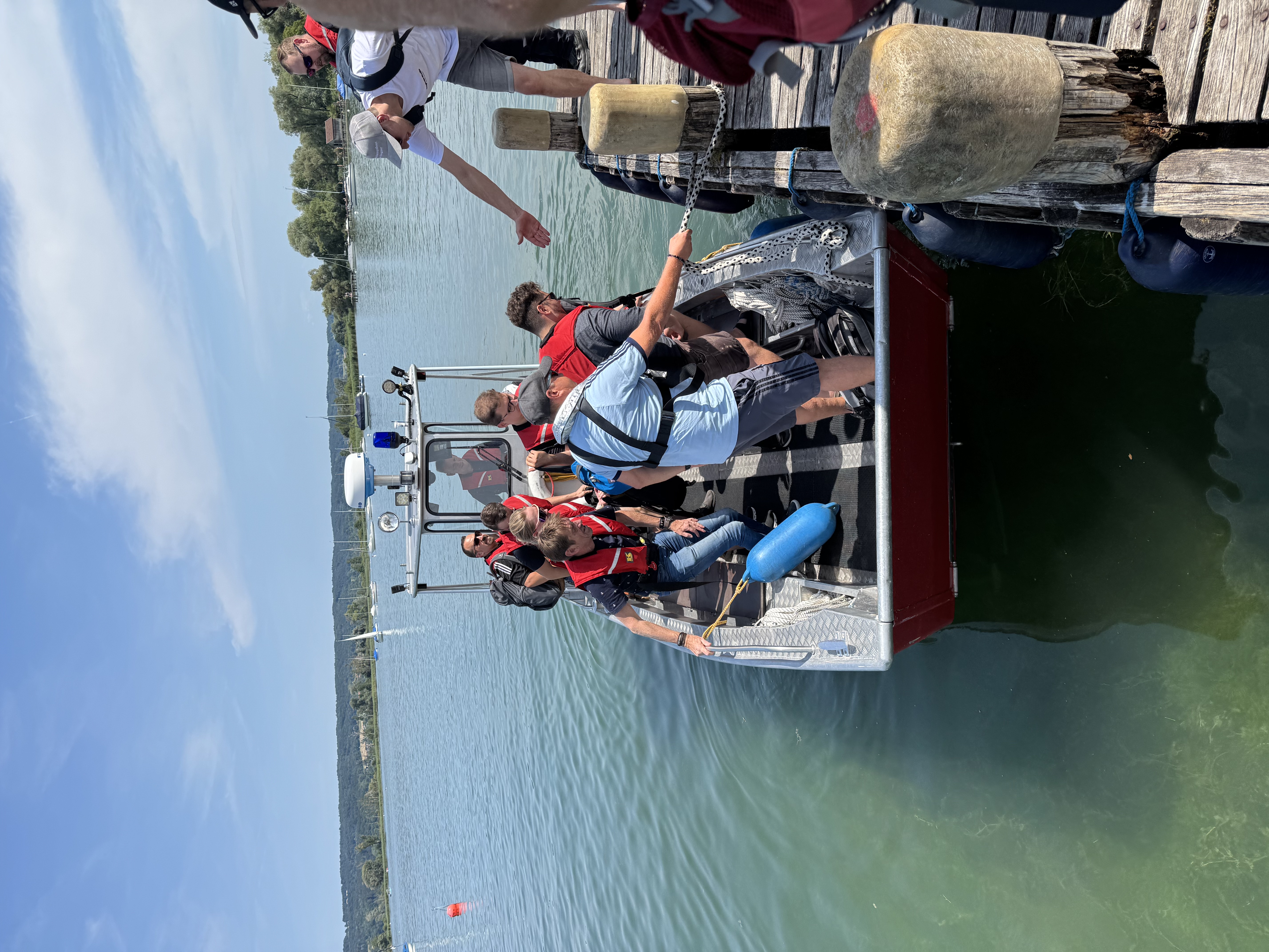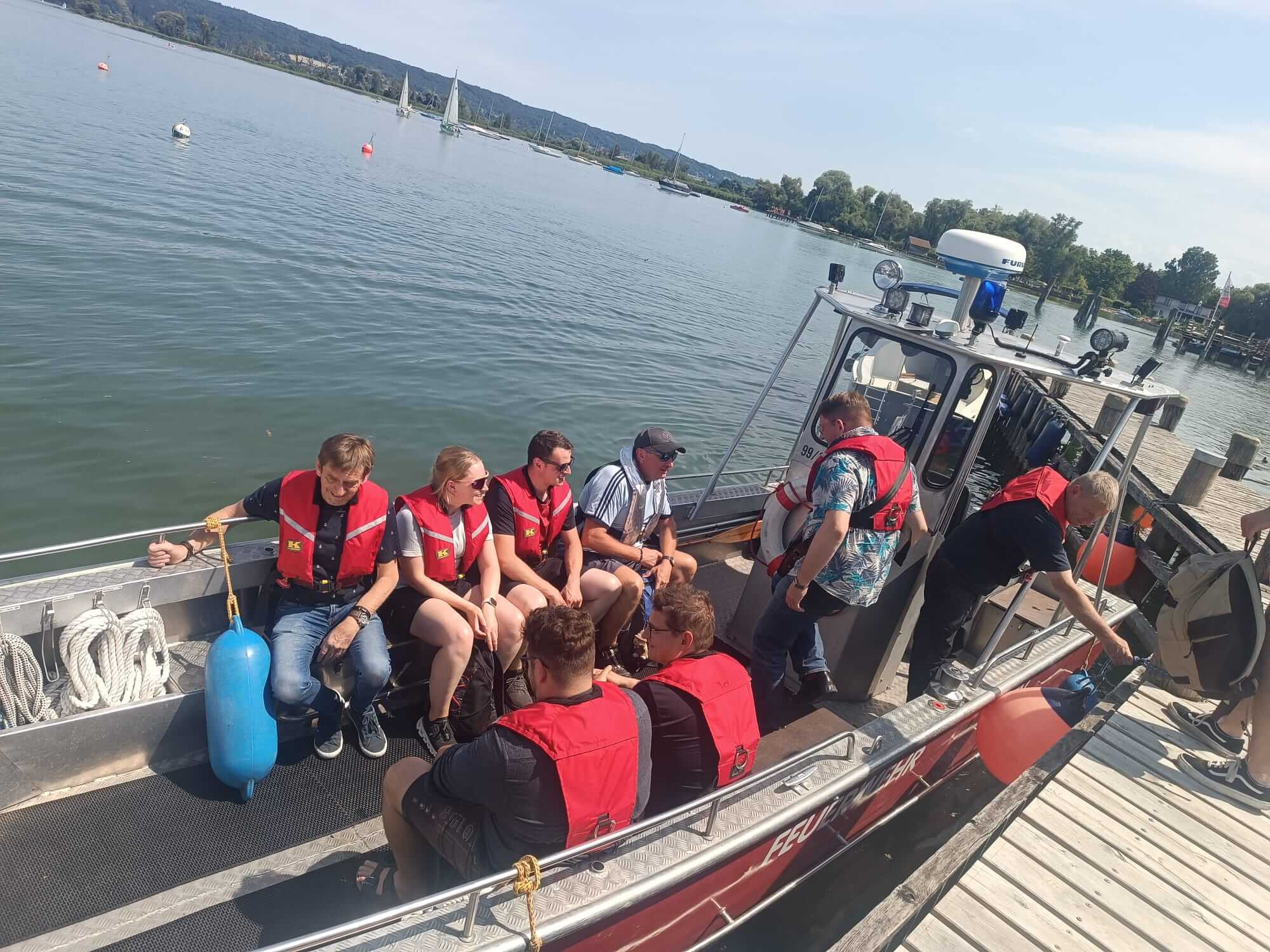 Nach spannenden technischen und taktischen Erläuterungen zum Einsatz des Feuerwehrboots ging es ins nahegelegene Freibad direkt am See, wo eine erfrischende Abkühlung wartete. Ein schöner Abschluss war die gemeinsame Einkehr in ein Gasthaus mit Seeblick, bevor die Teilnehmer mit der Bahn die Heimreise antraten.