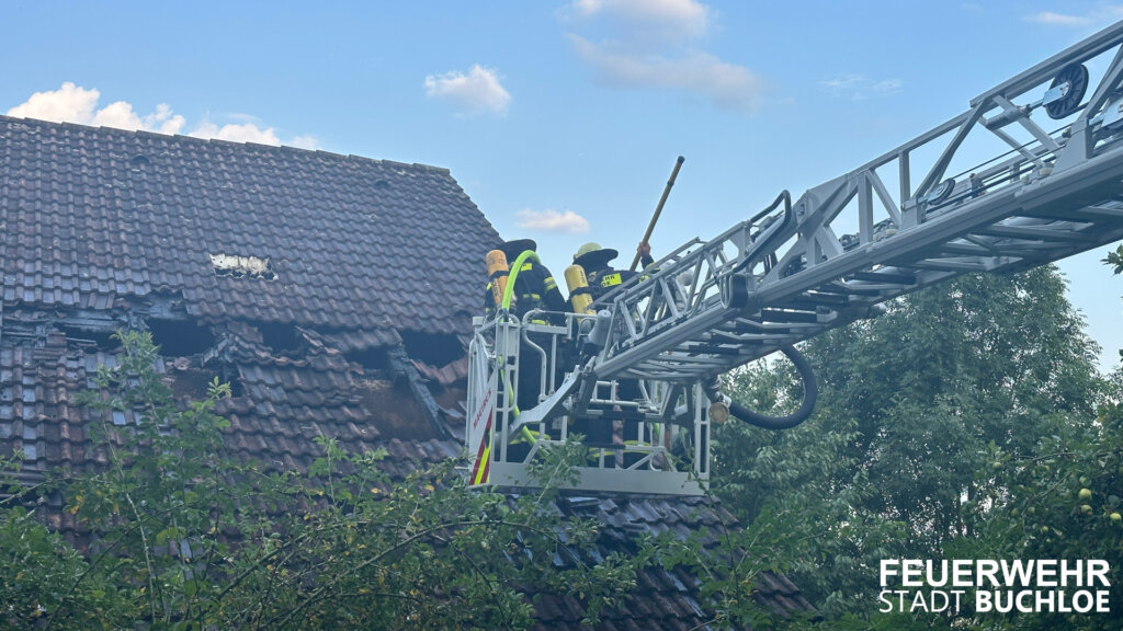 Bei Eintreffen der ersten Kräfte stand der Anbau des Wohnhauses in Vollbrand. Das Feuer hatte bereits auf Teile des Dachstuhls übergegriffen. Durch den Einsatz von insgesamt drei Trupps unter schwerem Atemschutz, die sowohl im Innen- als auch im Außenangriff mit drei C-Rohren vorgingen, konnte eine weitere Brandausbreitung verhindert werden. Eine sich im Brandbereich befindliche Gasflasche wurde ins Freie gebracht und dort weiter gekühlt. Über die Drehleiter wurden ergänzend Löscharbeiten am Dachbereich durchgeführt.