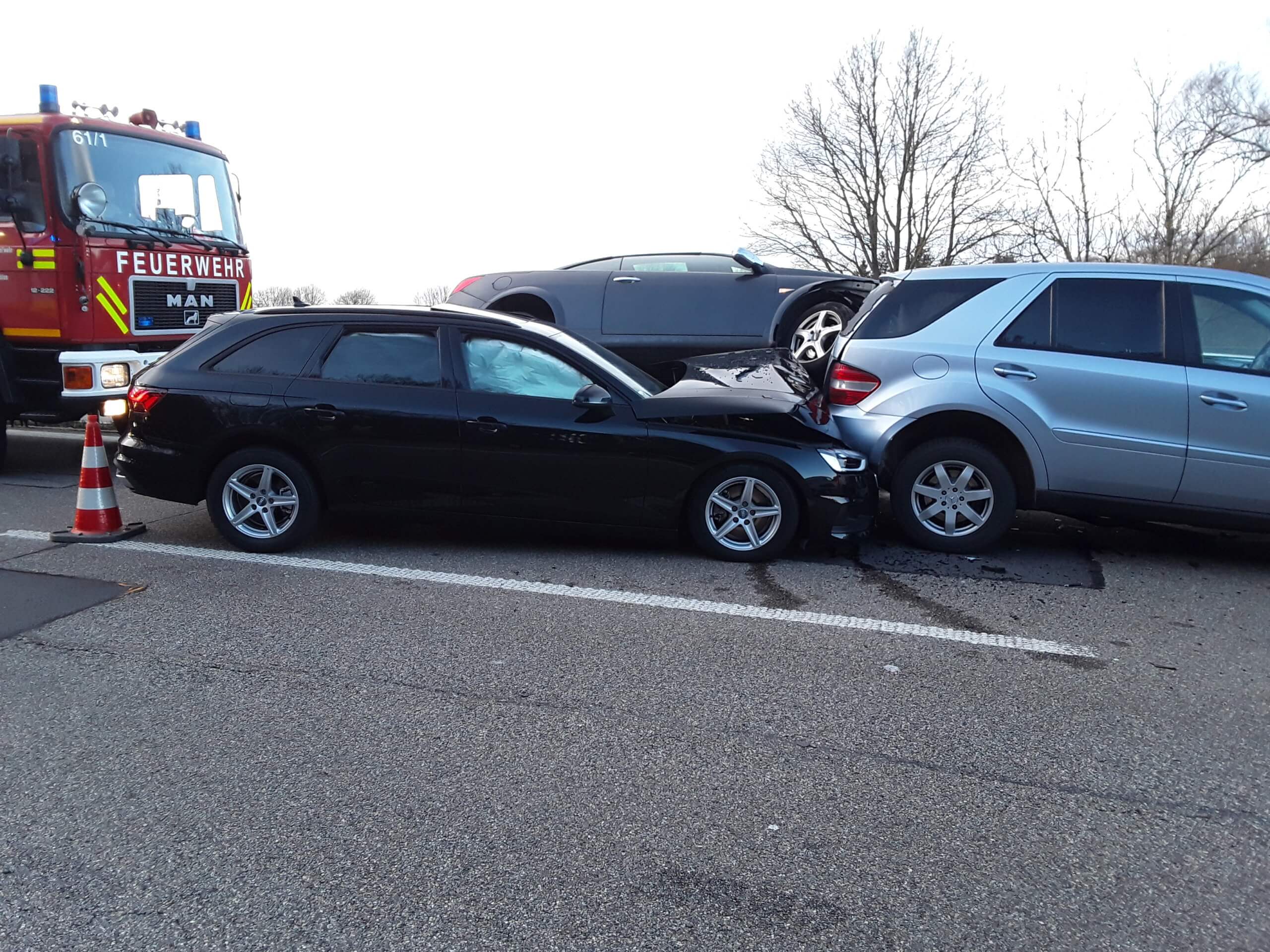Am 21.02.2020 wurde die Feuerwehr Buchloe auf die A96 zu einem Verkehrsunfall mit mehreren beteiligten Fahrzeugen alarmiert. Vor Ort bestätigte sich die gemeldete Lage, glücklicherweise waren keine Personen eingeklemmt. Die Feuerwehr leitete zunächst den Verkehr an der Unfallstelle vorbei und richtete später eine Vollsperrung der BAB ein, reinigte die Fahrbahn und unterstützte den Rettungsdienst. Zudem stellte die Feuerwehr bis zum Eintreffen des Abschleppdienstes den Brandschutz sicher. Auch der Rettungsdienst war mit einem Großaufgebot vor Ort. Gegen 19:45 konnte die Vollsperrung aufgelöst werden und alle Einsatzkräfte wieder in das Gerätehaus einrücken.